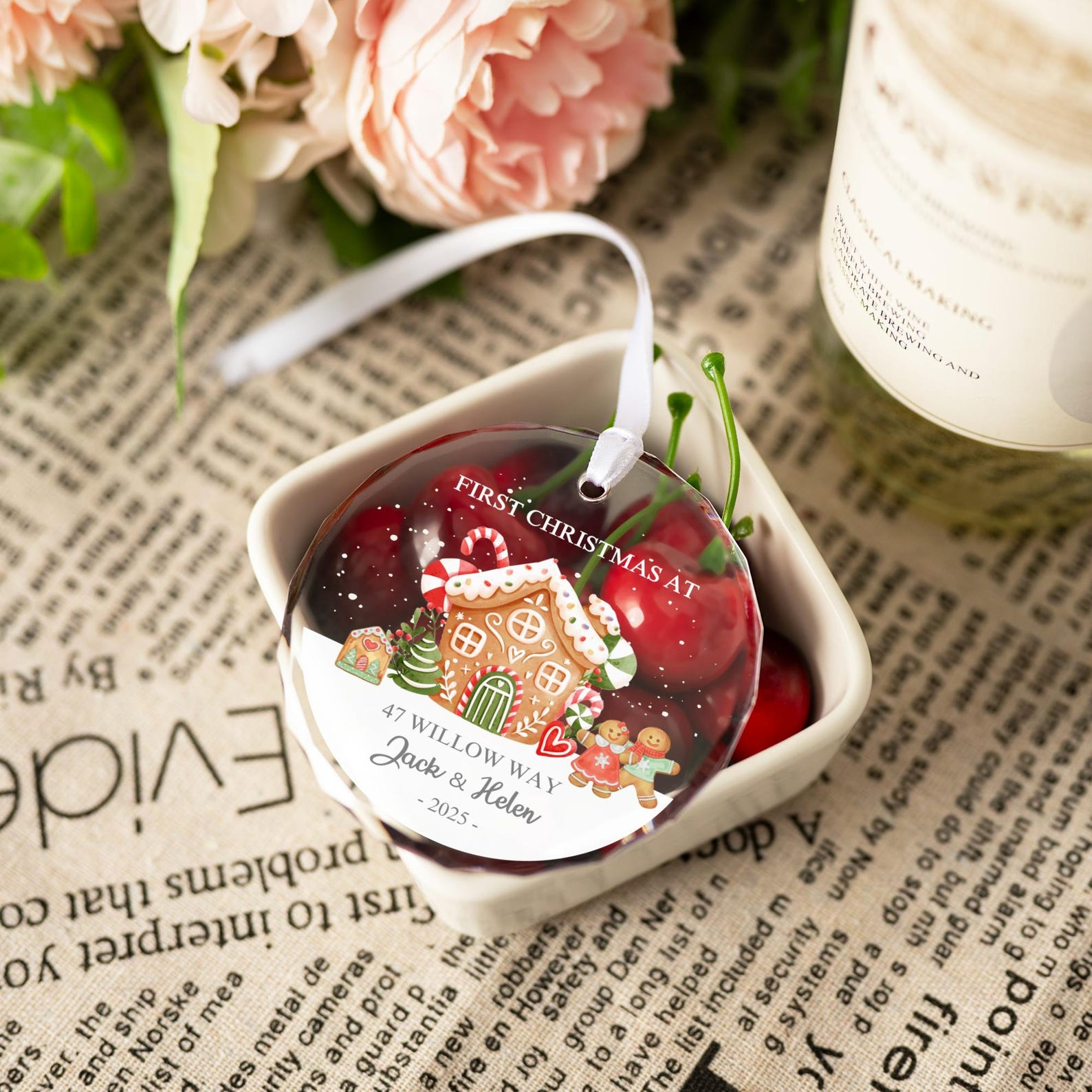 Celebrate a fresh start with this elegant custom glass ornament, the perfect keepsake for any new home. Personalize it with a name, year, or special address to create a meaningful gift that captures the joy of moving into a new space.
