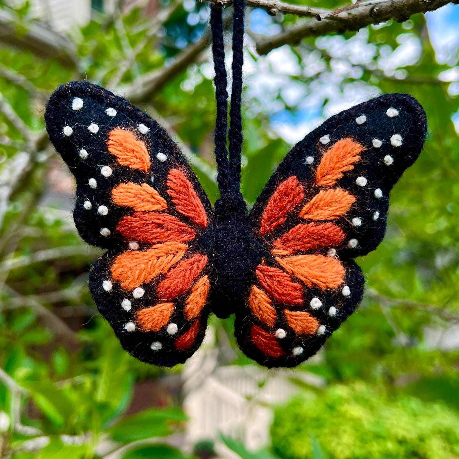 🦋 Monarch Butterfly Ornament – Handcrafted Wool Holiday Decoration