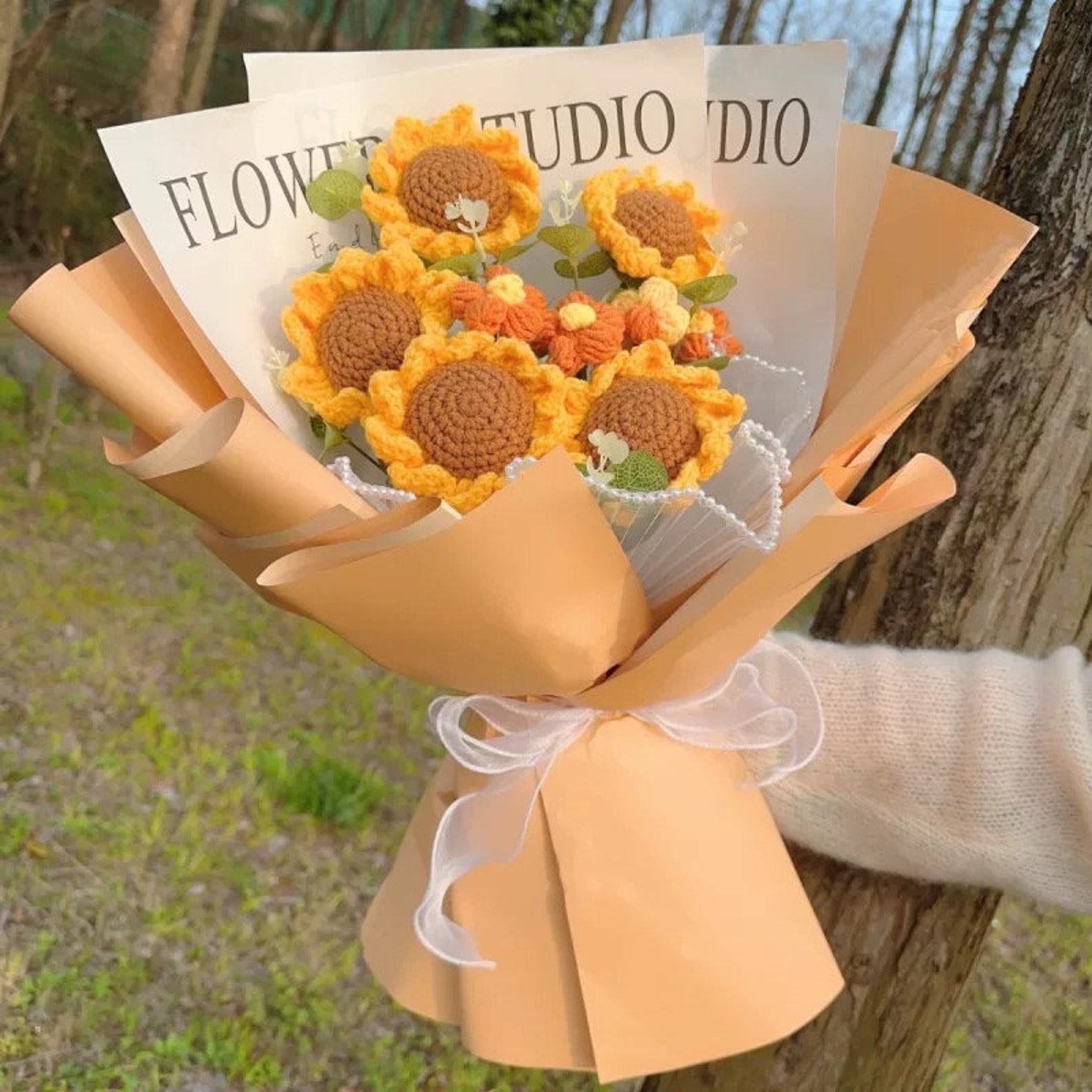 💐 Buy sunflower bouquet → Get 1 free crochet flower (tulip, carnation, or lily of the valley – your choice)