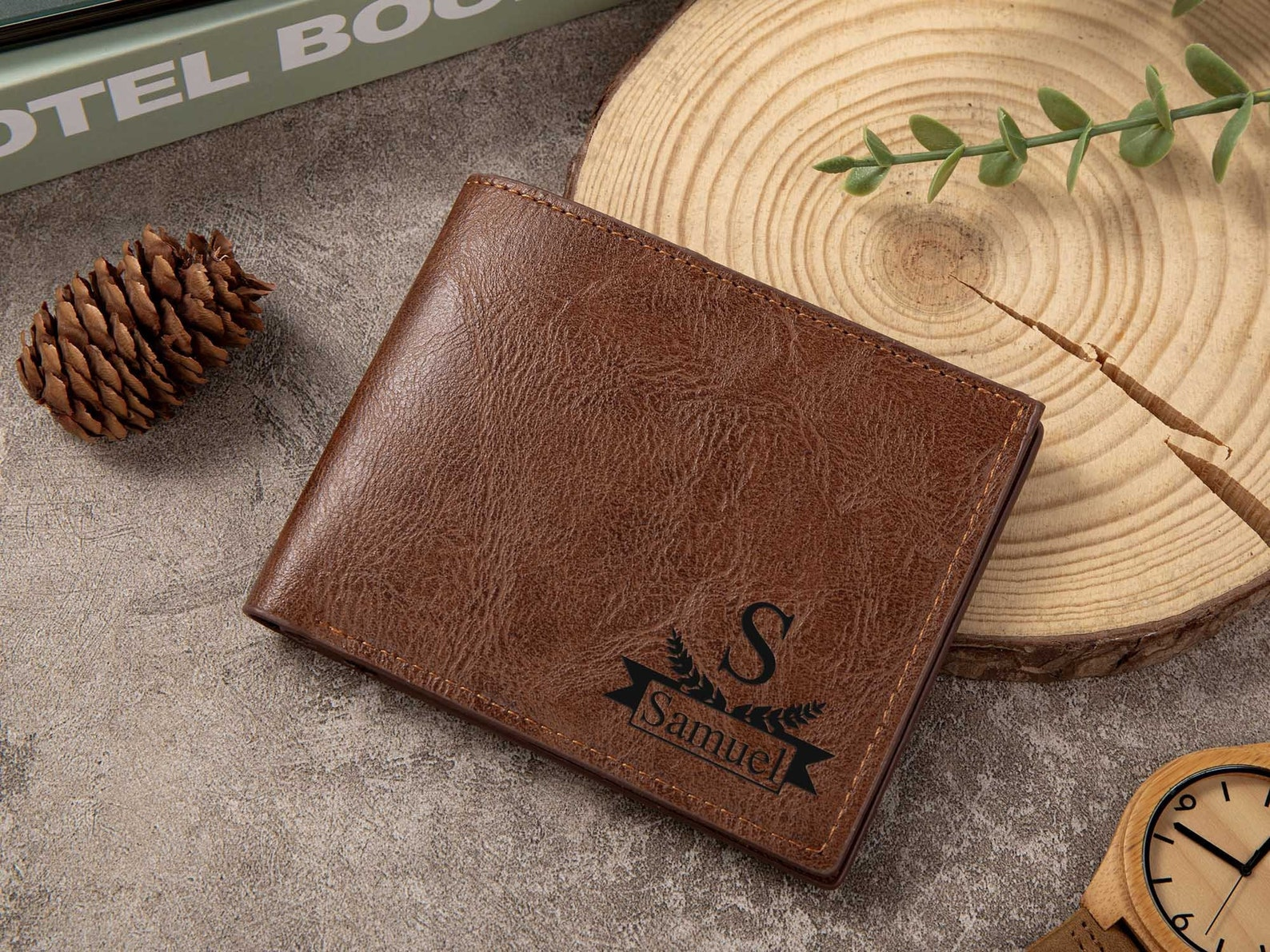 🖤 Personalized PU Leather Wallet – Custom Engraved Gift for Him