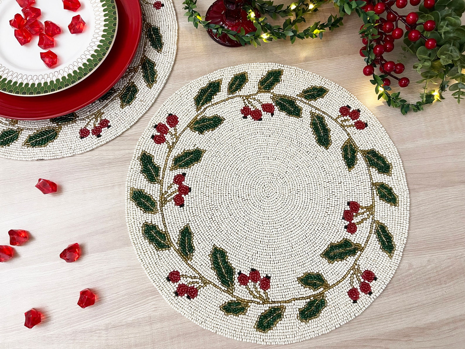 ✨ Handmade Beaded Christmas Placemats – Elegant, Festive, and Timeless ✨
