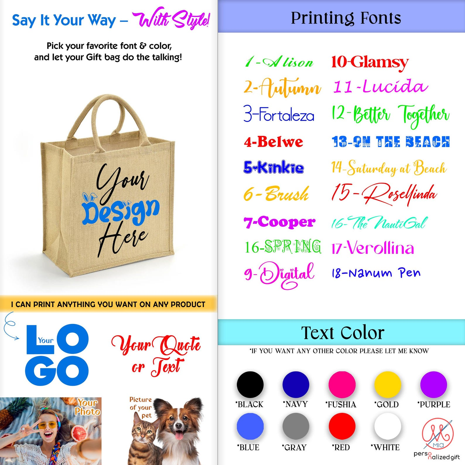 Surprise your bridesmaids, mom, or spring-loving friends with this charming Personalized Bunny Jute Bag. Featuring a sweet bunny design and custom name printing, this reusable tote blends rustic elegance with seasonal charm. Perfect as a gift bag, Easter tote, or decorative accent for spring celebrations.
