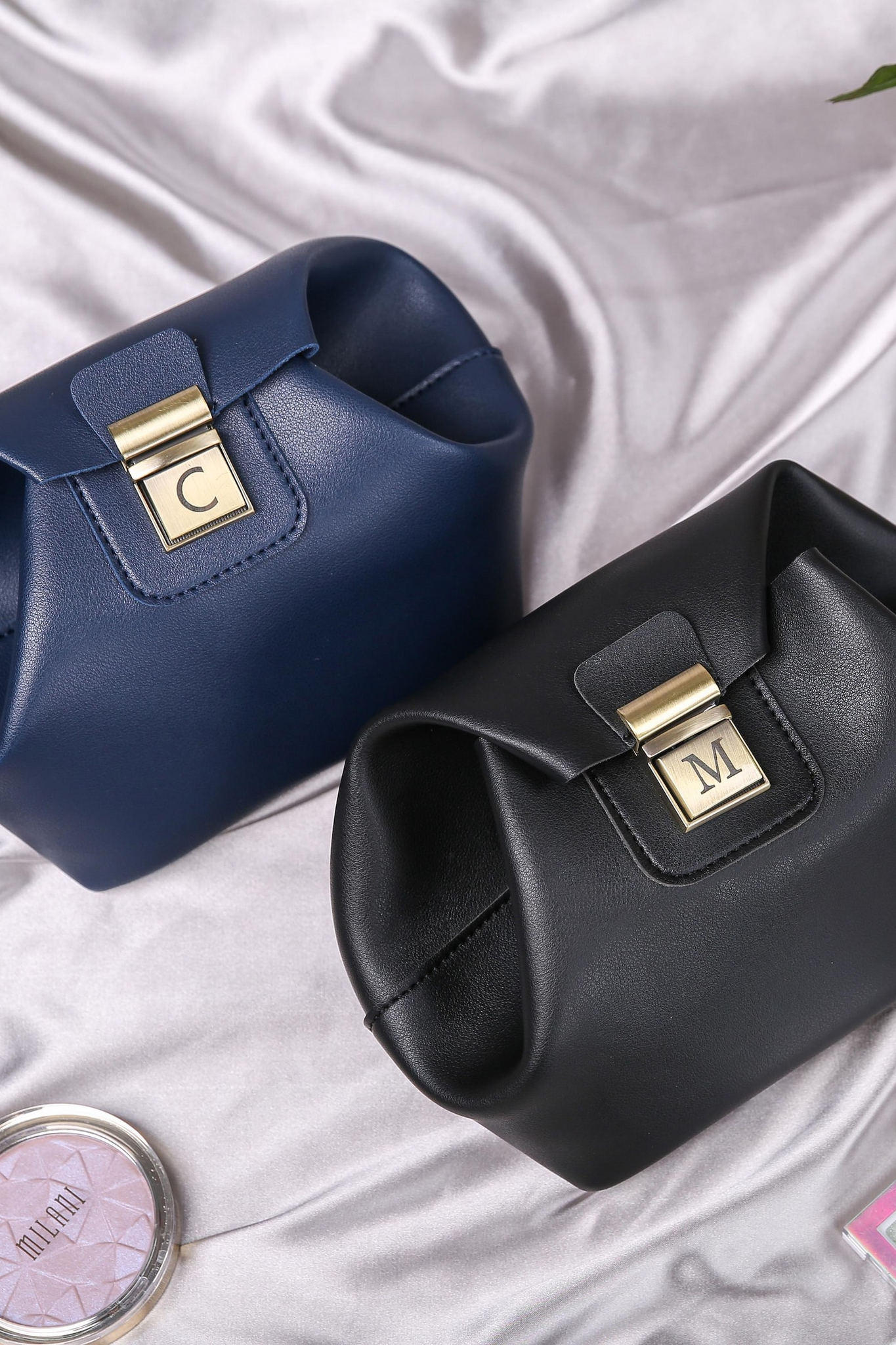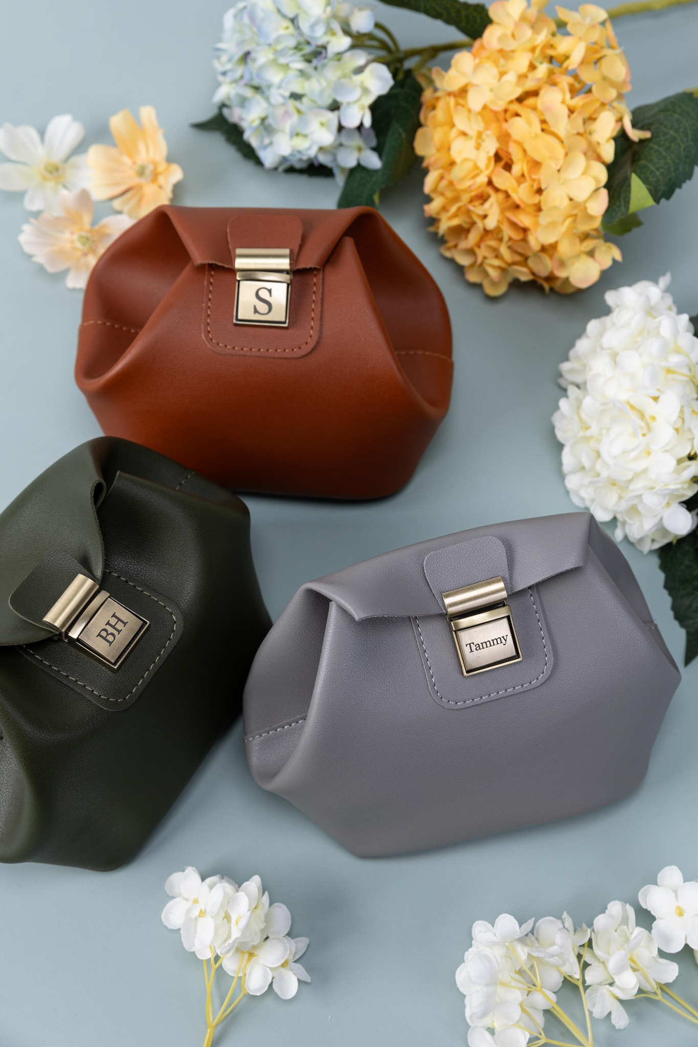 Add timeless elegance to your beauty routine with this Personalized Travel Clutch Makeup Bag, thoughtfully designed to blend style, security, and everyday practicality. Featuring a sleek brass tuck-lock closure and a spacious interior, this chic cosmetic bag keeps your essentials organized while looking effortlessly sophisticated.