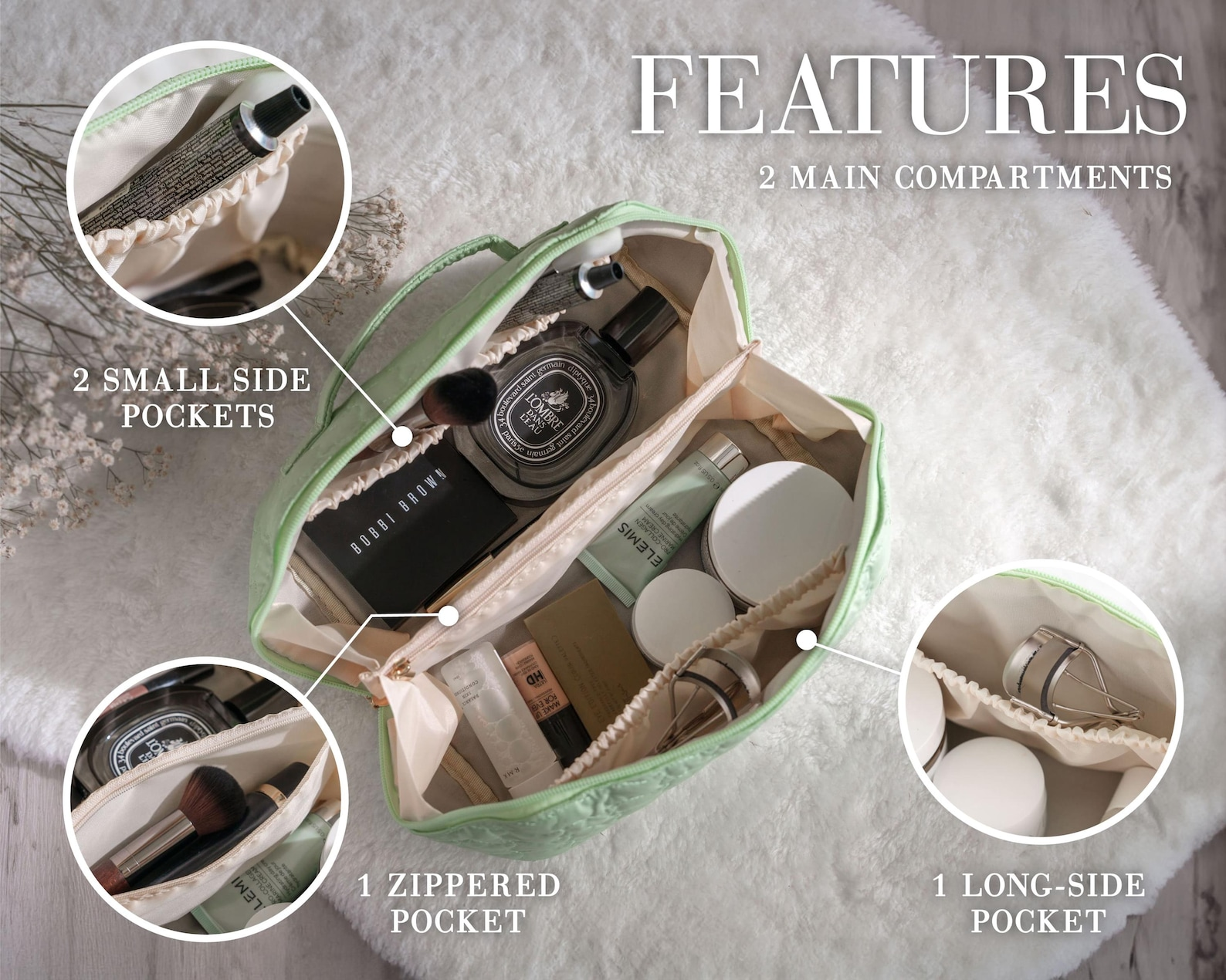 Spacious interior fits makeup, skincare, and daily essentials while maintaining a compact, elegant shape.