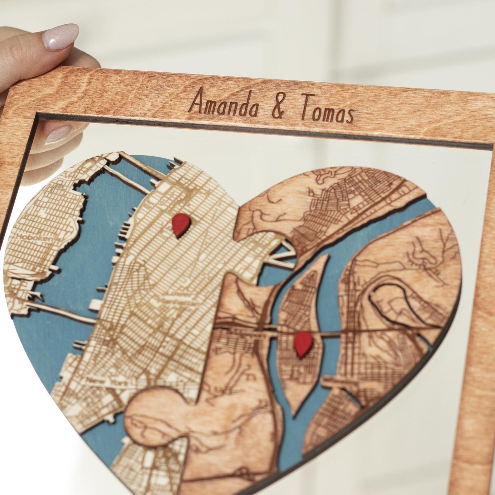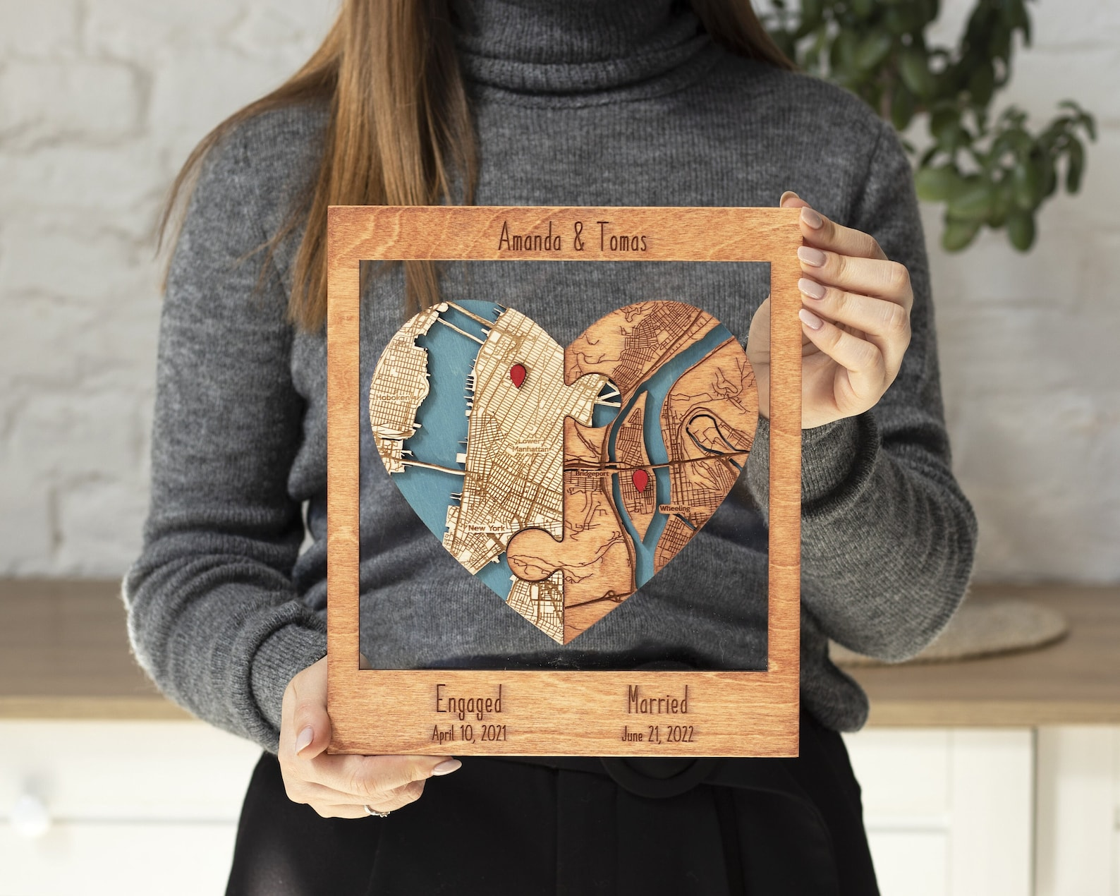 Perfect for couples who met in different cities, moved in together, married abroad, or are celebrating long-distance love.