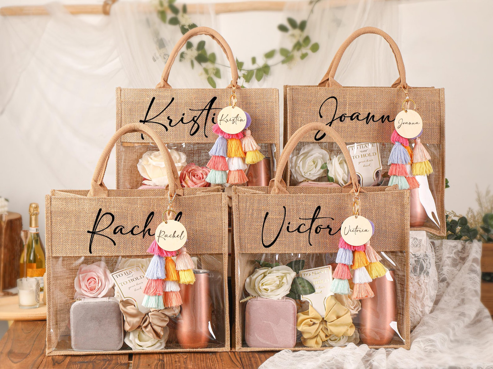 Say hello to the perfect bridesmaid bag—where practicality meets modern style with a personal touch. Thoughtfully crafted from natural hemp fabric and finished with a semi-transparent PVC front panel, this bag is eco-friendly, durable, and effortlessly chic.