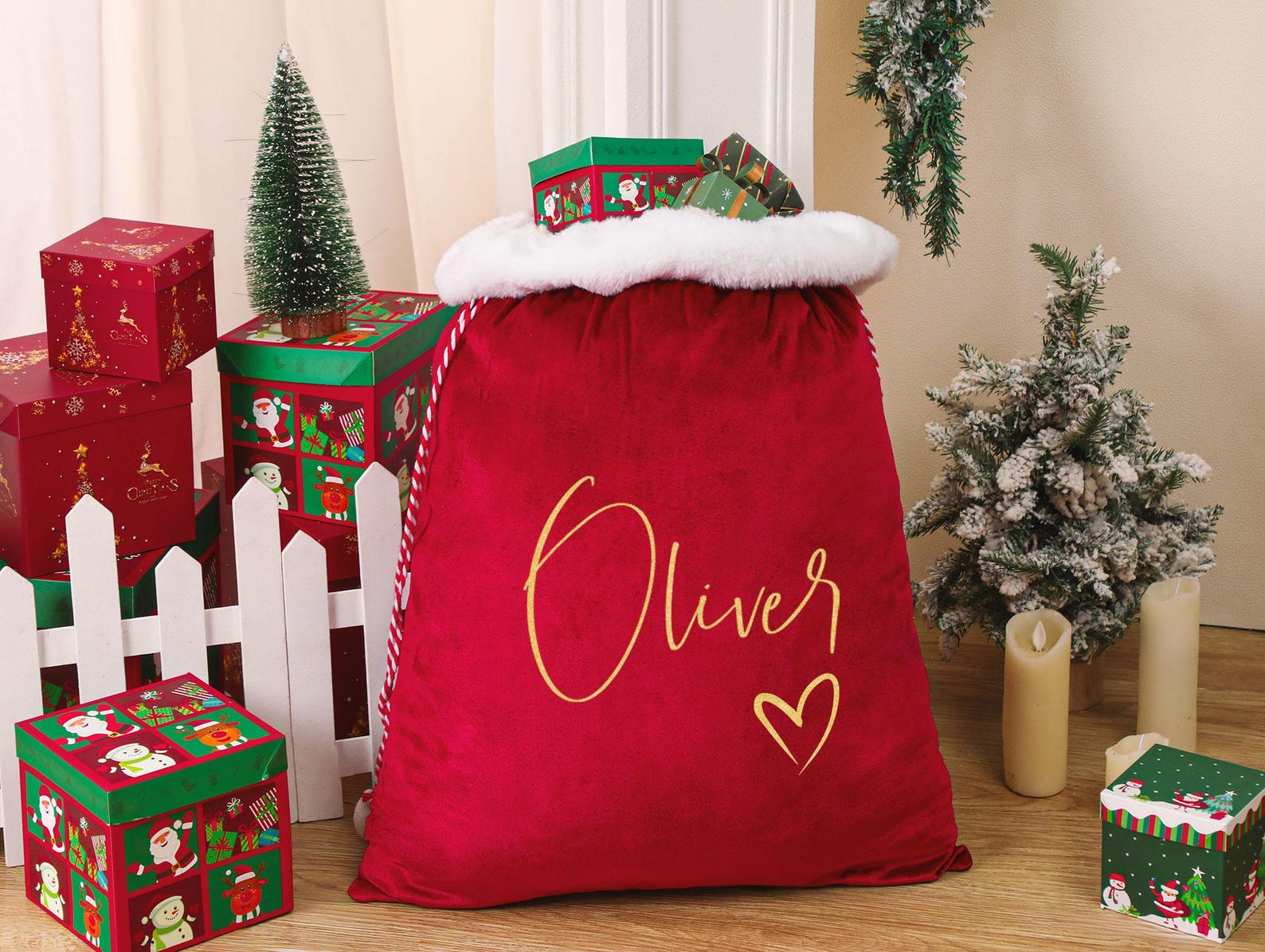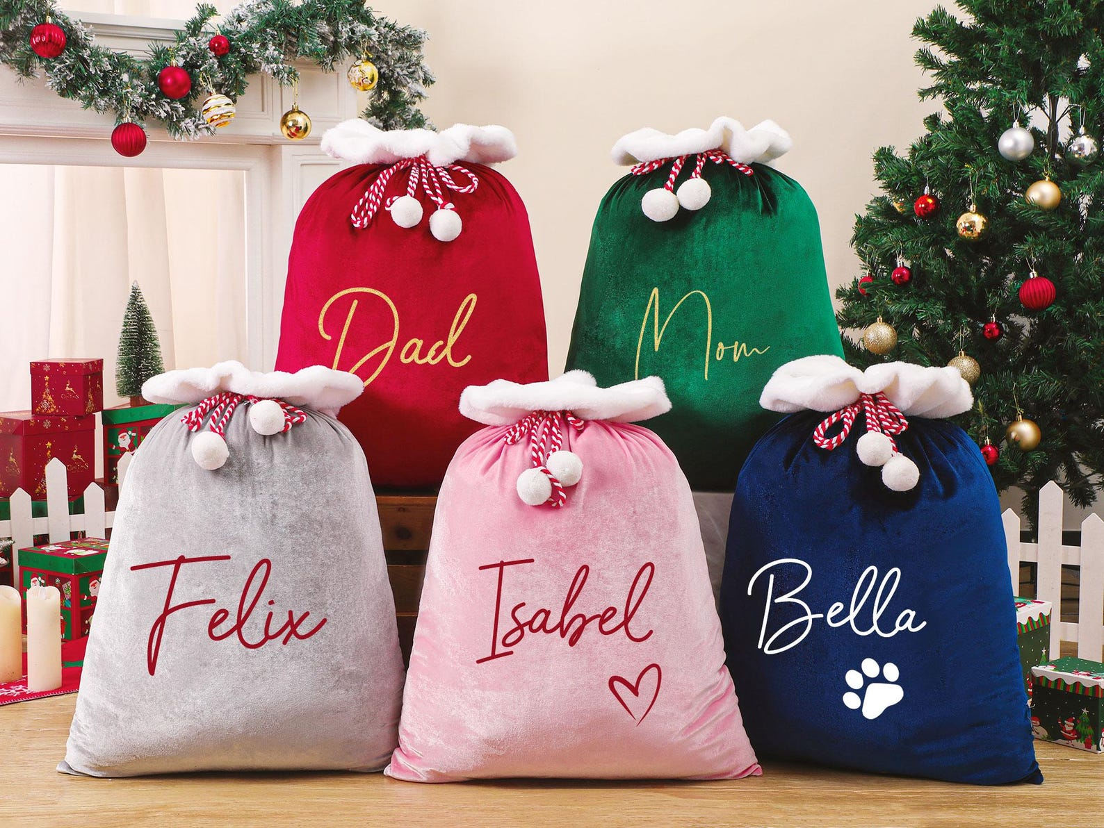 Make this Christmas unforgettable with your very own Personalized Santa Sack! Crafted from luxurious plush velvet and customized with names, hearts, or paw prints, this oversized gift bag adds a magical touch to your festive celebrations. Whether you’re delivering presents from Santa himself or decorating under the tree, this bag brings sparkle, warmth, and personalized charm to every holiday moment.