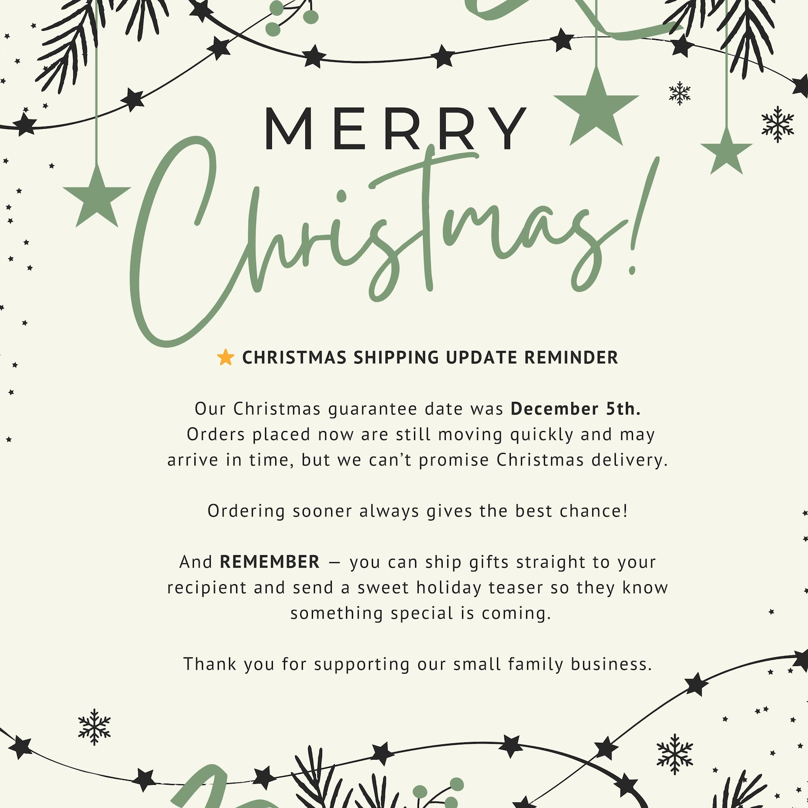 🎄 Orders placed after December 5th are NOT guaranteed to arrive by Christmas.