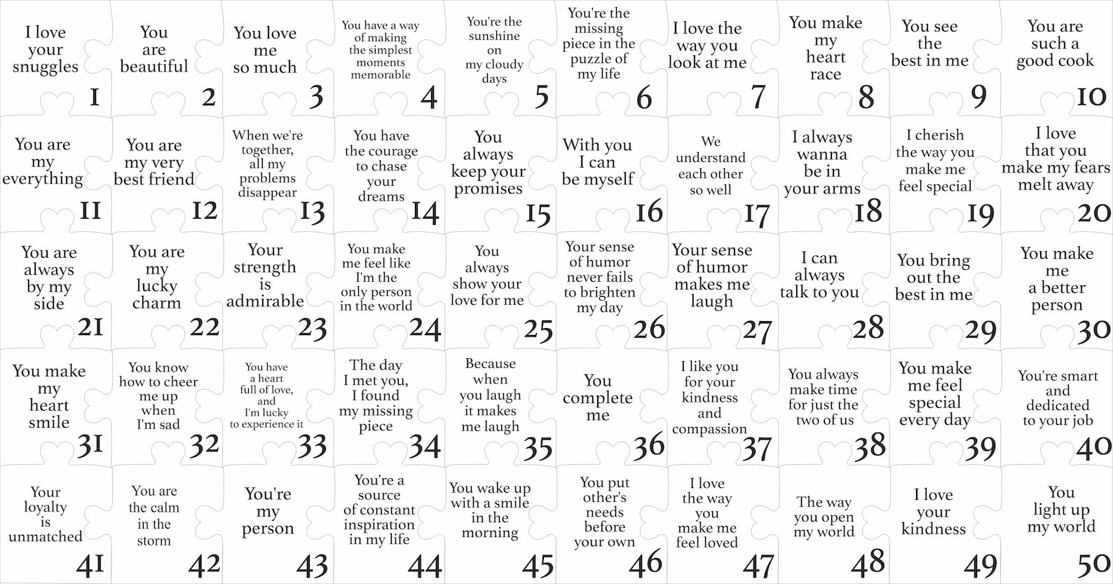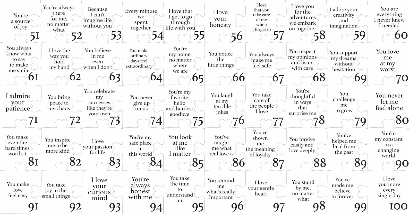 Choose from our pre-written reasons or write your own heartfelt messages — every puzzle becomes a story of your love. ✨