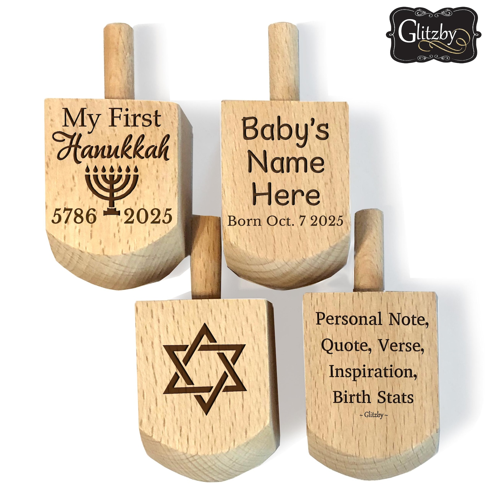 ✨ Baby’s First Hanukkah Dreidel 2025 / 5786 – Personalized Wooden Keepsake ✨