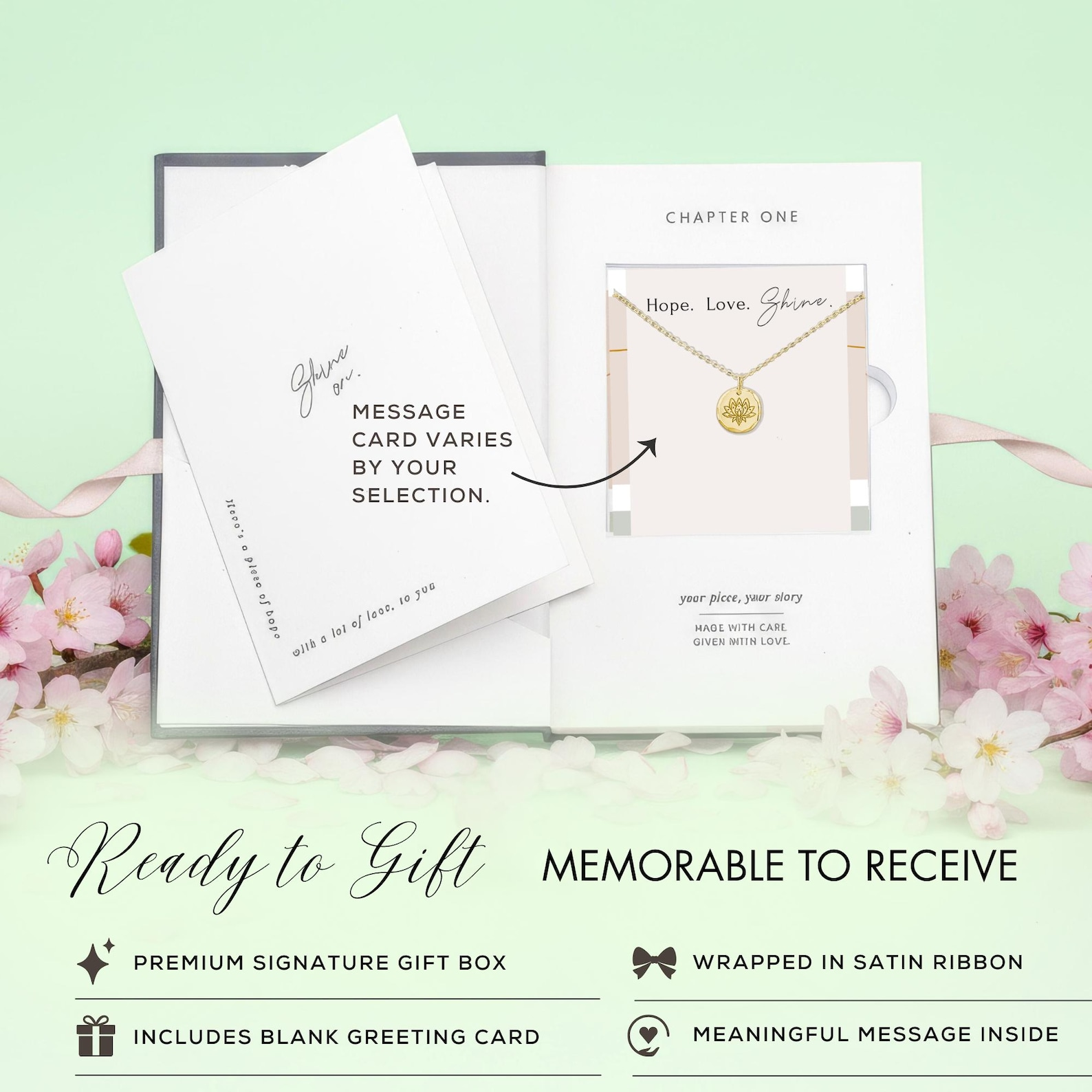 This Still I Rise Lotus Necklace is a powerful symbol of strength, renewal, and new beginnings, reminding her that every challenge has shaped her into someone wiser and stronger.